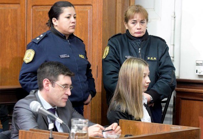 La joven llegó temprano este lunes por la mañana a los Tribunales de Gualeguaychú, esposada, escoltada por cuatro policías, que la metieron casi abrazada dentro de la Alcaidía.