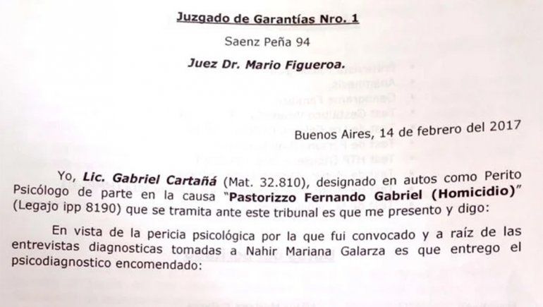 Según reveló Galarza, todo comenzó hace al menos dos años, cuando Cartañá se ofreció en forma insistente a realizarle una pericia para lo cual él realizaría tres viajes a verla en su celda de la “Cárcel de la Minoridad y las Mujeres” de Gualeguaychú y a realizarle una batería de doce test.