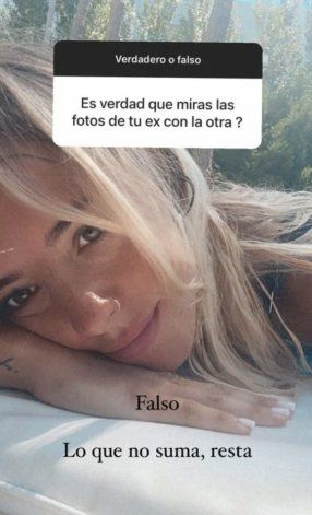 Fiel a su estilo, en aquel momento Nati Jota se rio de la situación, lo hizo especialmente en su cuenta de Twitter. Y ahora volvió a referirse al romance de su ex con la modelo. ¿El motivo? Se sometió a través de sus stories de Instagram a un picante "verdadero o falso".