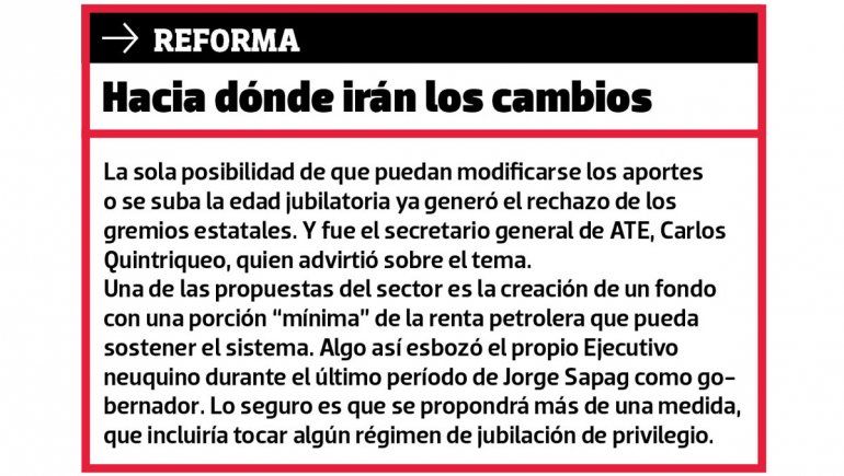 No descartamos revisar esto ni otro tema, lo único que sí descartamos es que no vamos a pasar la caja de la órbita provincial a la nacional. Esto es muy importante y en eso tenemos una coincidencia plena con los gremios, ya que todos queremos que la caja jubilatoria siga siendo administrada dentro del ámbito provincial, con las condiciones de hoy, donde jubilamos con el 80 por ciento. Necesitamos encontrar una solución neuquina a esta problemática.