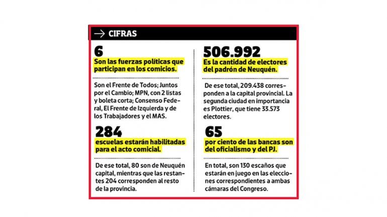 Están habilitados para votar 506.992 electores, de los cuales 209.438 corresponden a Neuquén capital.
