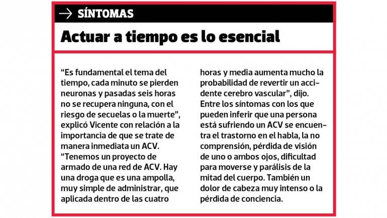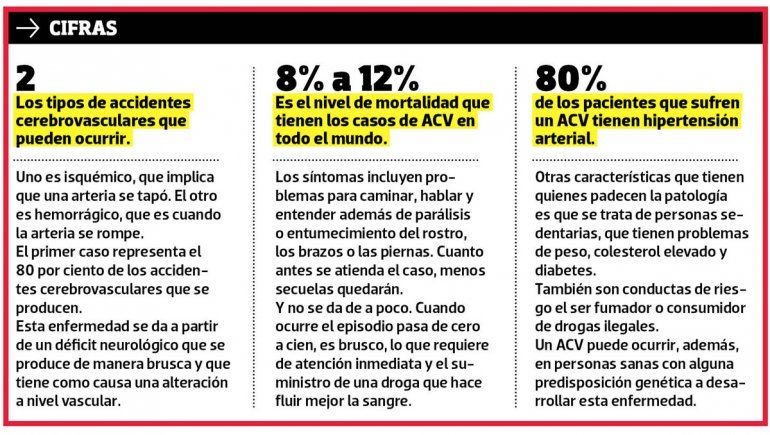 La provincia registra unos 3000 casos de pacientes con accidentes cerebrovasculares (ACV) por año, de los cuales 300 terminan en fallecimientos, mientras que otros 1500 quedan con algún tipo de discapacidad.