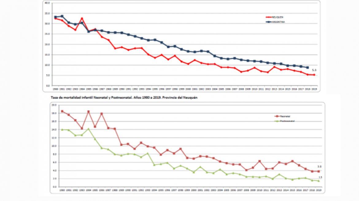 La provincia del Neuquén registró una tasa de mortalidad infantil por debajo del promedio nacional. Según las últimas cifras disponibles, en 2018 la Argentina tuvo un registro de 8,8 menores de un año fallecidos cada mil nacidos vivos, mientras que en la provincia el registro del año pasado fue de 5,4.