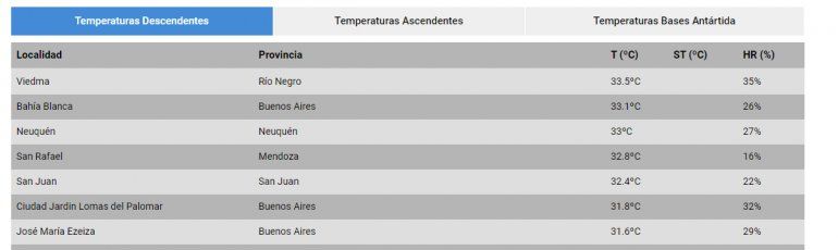 De acuerdo al reporte del Servicio Meteorológico Nacional, Cipolletti y Neuquén se encuentra en el Top 10 de la localidades con registros más elevados en el comienzo de la jornada con más de 25 grados a las 9 de la mañana.