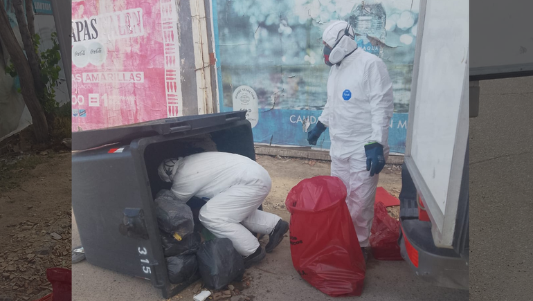 El funcionario relató que los residuos fueron descubiertos por un vecino "que hizo una presentación a través de distintas redes, producto del mal olor que tenía ese contenedor y cuando lo destapó se encontró con esta sorpresa". Ocurrió cerca de la intersección de las calles Tierra del Fuego y Montevideo.