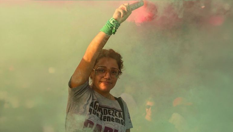 Su vínculo con el feminismo comenzó desde chica, acompañando a su mamá a las marchas. Pero fue en una convocatoria a batucada organizada por La Revuelta en un 8M -bajo la consigna “En un mundo justo las niñas no son madres”- donde sintió que ese espacio también era suyo. Desde 2020 milita activamente.