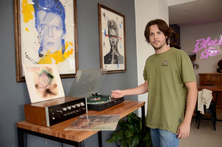 Hace más de dos años que Germán, junto a su papá y su hermana, abrieron el hostel Blackstar, un espacio que combina un hospedaje que homenajea a David Bowie con un faro del arte neuquino.