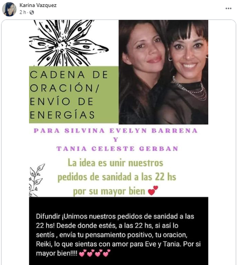 Ante la delicada situación, familiares y amigos realizaron un pedido de cadena de oración por su recuperación. También solicitan colaboración económica para solventar los gastos médicos y de cuidado que demande la internación en Bariloche.