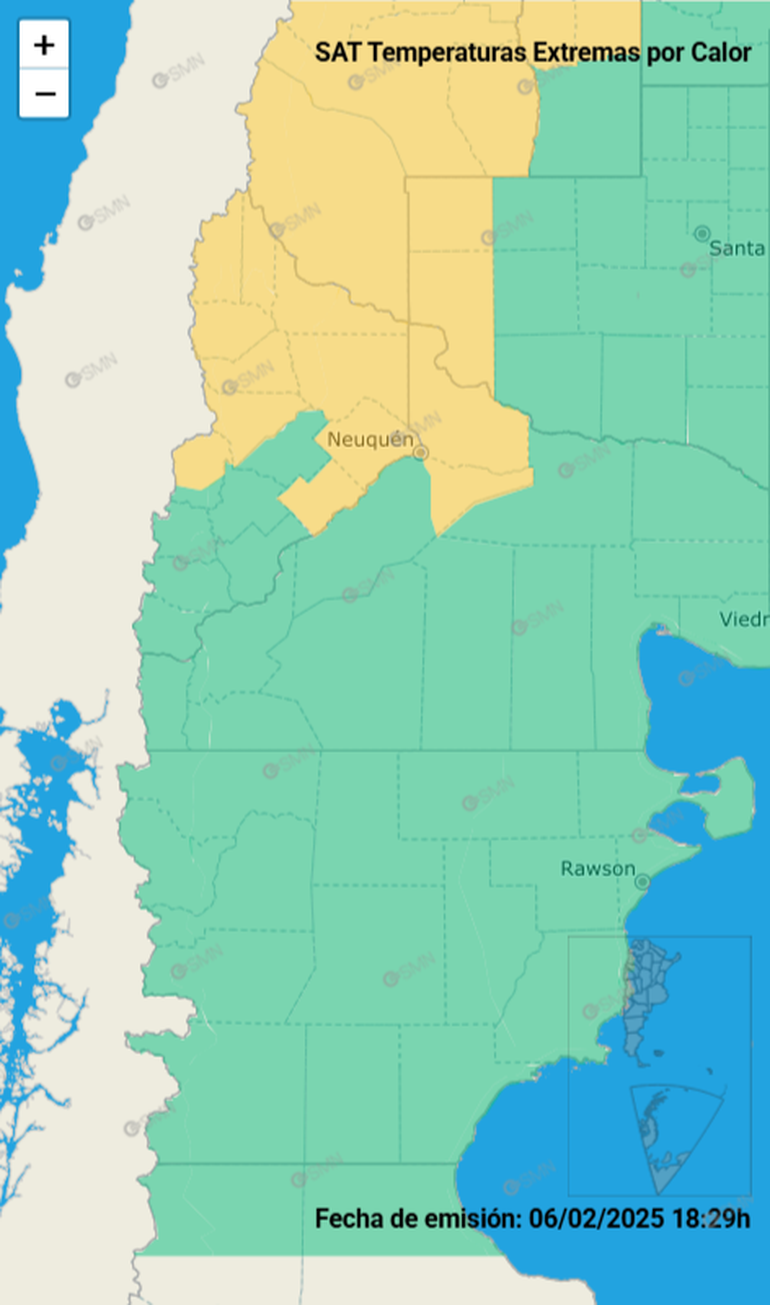 El SMN detalló que además de la capital neuquina, se verán afectadas por el alerta las ciudades de Andacollo, El Huecú, Chos Malal, Buta Ranquil, Loncopué, Las Lajas, Aluminé, Añelo, 25 de Mayo y Picún Leufú.