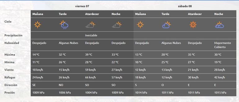 "Serán jornadas de mucho calor, estará inestable este viernes por la noche pero llega el viento antes. Será una tarde noche de viento, con algunas rafagas más de 60 km/h, hay que estar atentos, el viento es el protagonista hoy", precisó Frassetto.