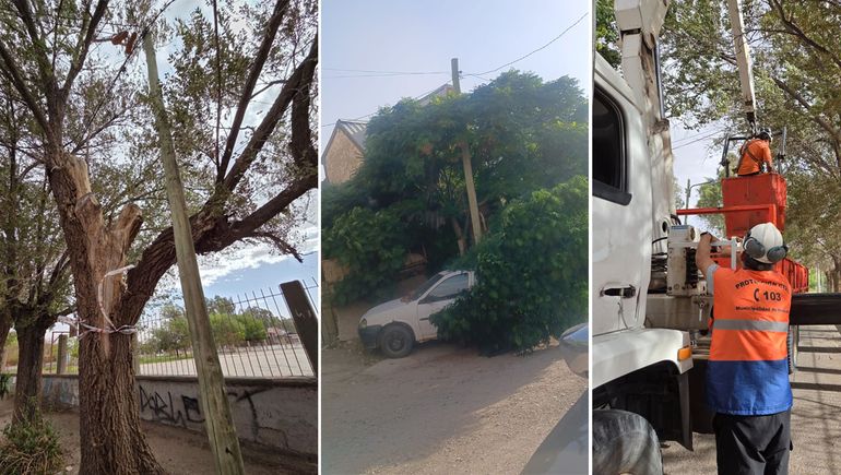 Según se informó, las ráfagas provocaron la caída de árboles y ramas de gran porte sobre líneas y estructuras eléctricas, lo que generó interrupciones del suministro en varias localidades y zonas rurales.