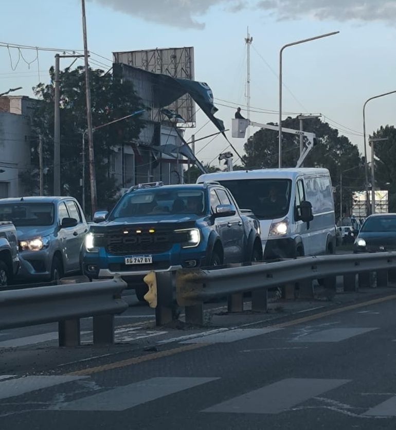 El subsecretario de Medio Ambiente y Protección Ciudadana de la Municipalidad de Neuquén, Francisco Baggio, explicó a LM Neuquén que "un cartel de grandes dimensiones se desprendió y tuvimos que trabajar dos horas con Calf para poder quitarlo de la vía pública.
