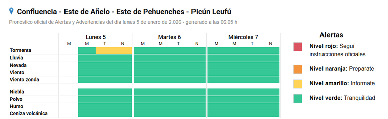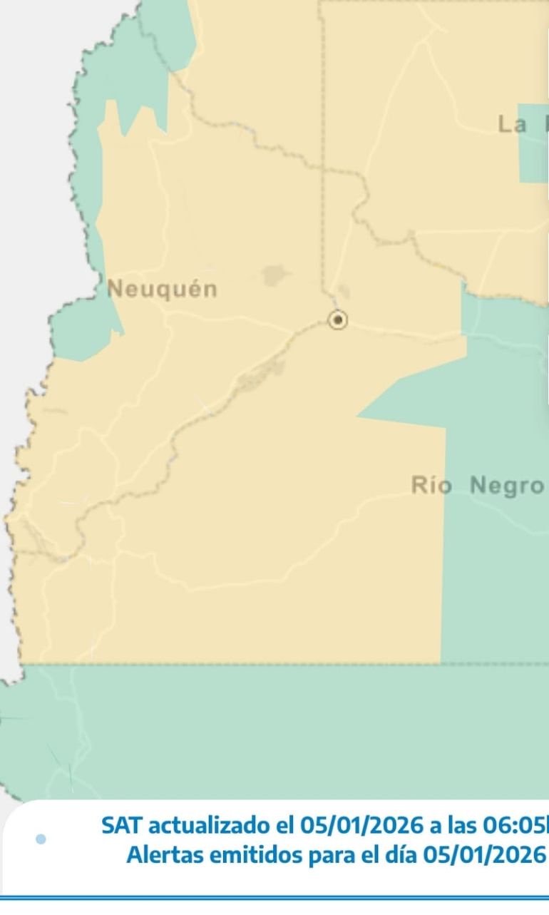 La alerta amarilla alcanza a los departamentos Confluencia, el este de Añelo, este de Pehuenches y Picún Leufú.