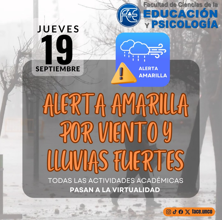 La rectora de la UNCo emitió una resolución que establece asueto administrativo a partir de las 14 debido al alerta por viento que emitió el Servicio Meteorológico Nacional para toda la región. La suspensión de las clases presenciales dependerá de cada unidad académica.