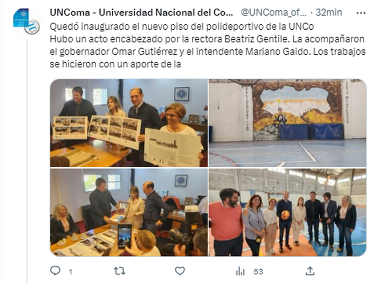Por su parte, Gutiérrez también remarcó la “reconciliación” lograda con la UNCo en la gestión del intendente Mariano Gaido y señaló que cuando ello sucede “se reencuentra y encuentra para lograr soluciones y hacer realidad las necesidades y los objetivos”, reflejado en este caso en la obra llevada a cabo.