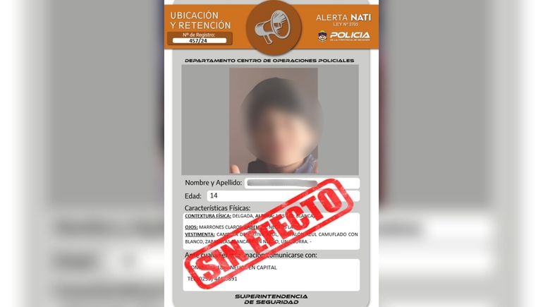 El mismo martes, se activó otra Alerta Nati por otro jovencito también de 14 años que era buscado intensamente. En las últimas horas, su búsqueda quedó sin efecto tras ser ubicado y regresado a su hogar sano y salvo.