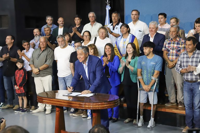 "Qué bueno sería que un chico del Oeste pueda aprender a nadar en el Santafesino", dijo el gobernador Rolando Figueroa, justo antes de firmar la entrega de aportes a los 38 clubes. Y aclaró que el objetivo es generar un sistema de ganar-ganar para la ciudadanía y para las instituciones deportivas. "Esos chicos nuevos que llegan, conocen el club y llevan a su familia, y así pueden convertirse en nuevos socios", expresó.