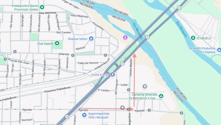 De esta manera, los automovilistas que salgan desde la capital provincial hacia Cipolletti deberán utilizar un desvío, que estará delimitado por las calles Aguado y Lázaro Martín (la continuidad de Obrero Argentino) para acceder nuevamente al puente y hacer el cruce interprovincial.
