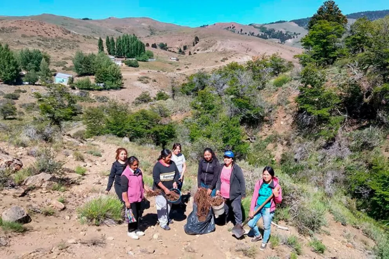 Artesanías Neuquinas realizó el aporte de los elementos de trabajo, como ruecas, palos para el armado de telares, vellones, y ñirewes, como así también el pago mensual de la tallerista que dicta la capacitación.