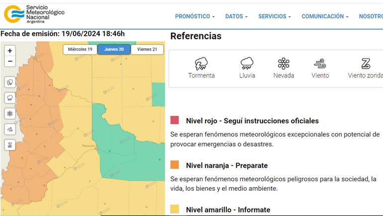 En tanto, el SMN emitió alerta amarillo y naranja por nieve para este jueves y viernes en algunos sectores de la provincia, según el siguiente detalle: