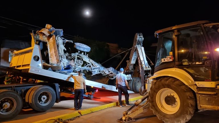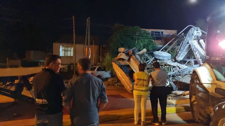 Los trabajos de despeje en el lugar se llevaron adelante durante toda la noche, con una importante intervención de personal municipal y provincial. Las áreas de Limpieza Urbana, Defensa Civil y Servicios Públicos estuvieron afectadas a las tareas, al igual que la Policía y personal de la Cooperativa CALF. También se requirió el uso de una retroexcavadora para retirar los ladrillos.