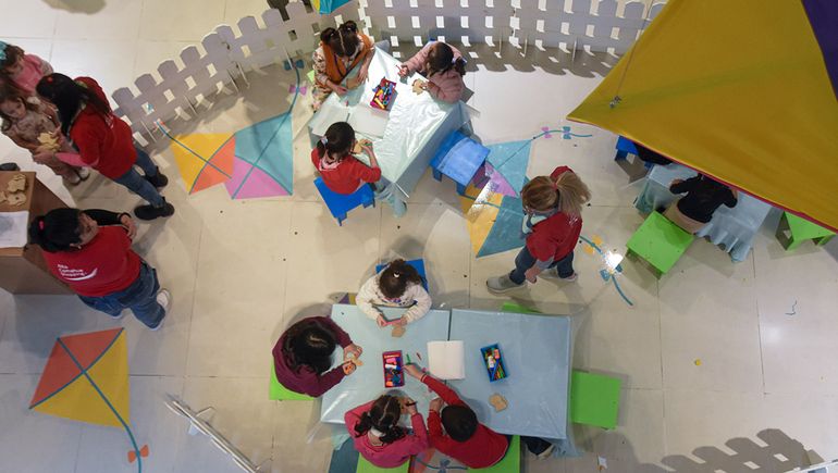 En primer lugar, ofrecen un espacio en el que los chicos pueden sacarse fotos con el muñeco Don Fresquete. Luego, hay un taller de arte para que los niños pinten y puedan llevarse un recuerdo a sus casas. Y, por último, montaron una casita de cuentacuentos.
