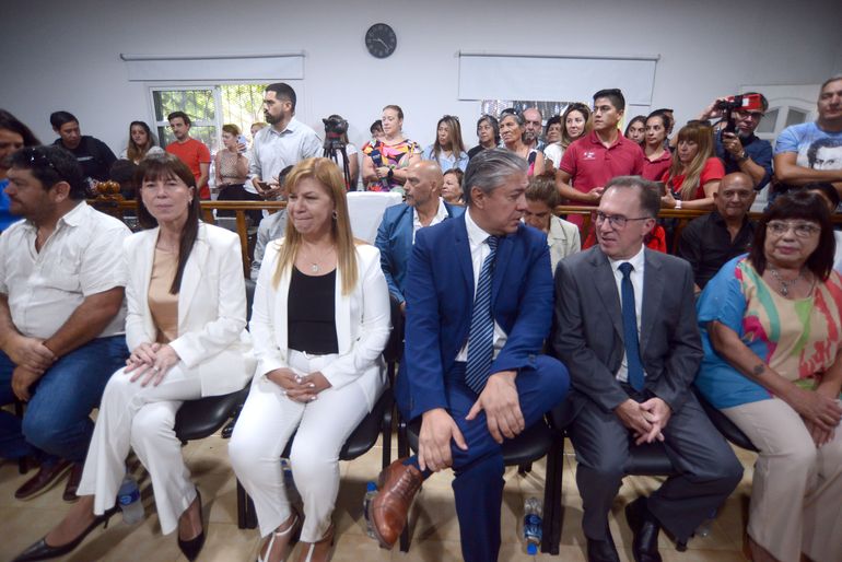 Bertolini contó con el acompañamiento del gobernador, Rolando Figueroa, la vicegobernadora y ex intendenta de Plottier, Gloria Ruiz, la ministra de Desarrollo Humano, Gobiernos Locales y Mujeres, Julieta Corroza y los representantes del ejecutivo local y vecinos, quienes lo escucharon atentamente y con bastante calor dentro del austero recinto.