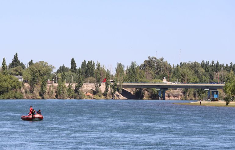 Participan efectivos policiales y de Prefectura, Bomberos y una pareja de buzos de Allen, entre otros colaboradores.
