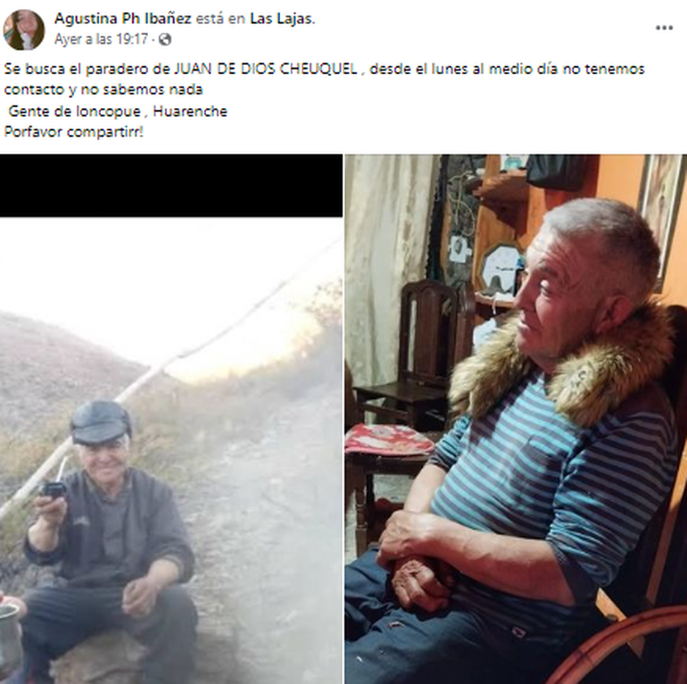 La última vez que lo vieron con vida se dirigía a Zapala para realizar algunos trámites personales y luego regresar al puesto donde trabaja, en la zona conocida como Pozo Gualicho, en Las Lajas.
