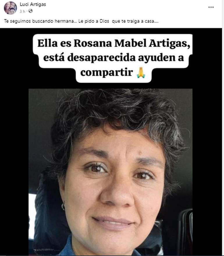 El posteo de su muro de Facebook reveló también la identidad de José Fernández, la ex pareja de Rosana y principal sospechoso de su desaparición. "Queremos que aparezca con vida mi hermana. Por favor gente...pasamos la noche en la comisaría y no hay novedades", indicó la hermana, desesperada.