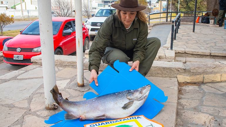 Guardafaunas decomisaron una trucha de 10 kilos en Mari Menuco