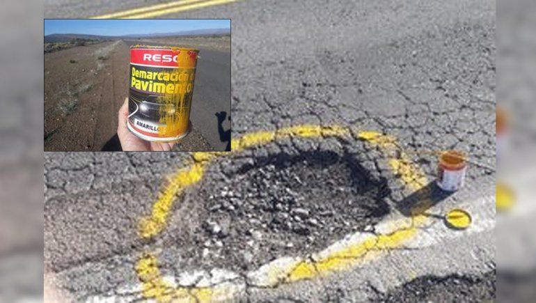 La mujer dijo que terminarán de pintar los baches en el próximo viaje a Zapala, previsto para una semana. Tendrán que llegar hasta la entrada de Loncopué frente a un santuario del Gacuchito Gil.