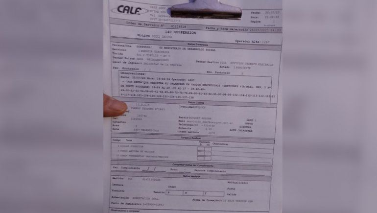 Como si eso fuera poco, cuando estaban manifestándose sobre la ruta se acercó un móvil de Calf con operarios para cortar el suministro por falta de pago. “Llegaron los muchachos de Calf porque había un aviso de corte, pero al final no sé a quién llamaron y no se concretó. El monto debe ser abultado”, estimó la mujer.