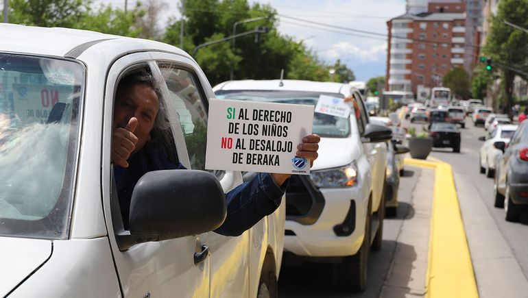 La Escuela Deportiva Beraka, que funciona en la Colonia Nueva Esperanza, volvió a manifestarse este jueves y salió a la calle con una caravana para exigir que se les devuelvan todas las hectáreas del terreno que les habían otorgado originalmente en la meseta. El reclamo se da luego de que una ordenanza del Concejo Deliberante modificara la cesión y recortara parte del predio, lo que motivó una fuerte reacción por parte de la institución.