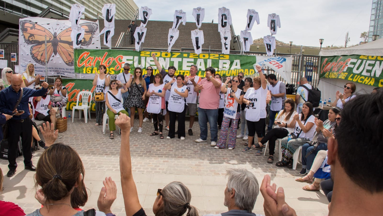 Como ocurrió desde un principio, estuvieron presentes en la audiencia los ocho acusados y también quien era pareja de Carlos Fuentealba, Sandra Rodríguez.