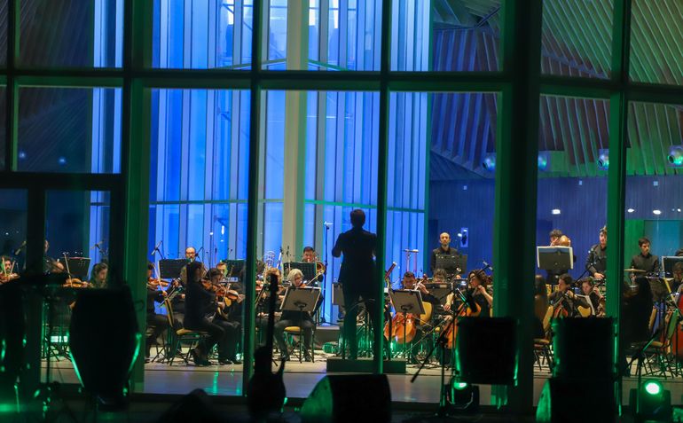 La Orquesta Sinfónica de Neuquén interpretó los himnos Nacional y de la Provincia de Neuquén y otras piezas musicales para el público que se acercó a la inauguración.
