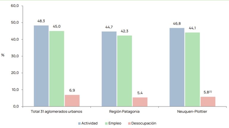 El informe sobre el Mercado de trabajo, tasas e indicadores socioeconómicos (EPH) del INDEC del tercer trimestre de este año reveló que la desocupación neuquina se ancló en 5,8% con una tasa de actividad del 46,8% sobre una población de 323 mil personas en el universo de la muestra, que incluye a los habitantes de Neuquén y Plottier.