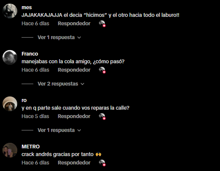 En realidad, en el video no se lo ve a Luca arreglando el daño. Pero alguien tenía que filmar lo que hace "Andrés" en el lugar y relatar muy bien el paso a paso de la reparación con cemento. Varios usuarios de las redes se dieron cuenta y los comentarios, algunos muy graciosos, no se hicieron esperar.