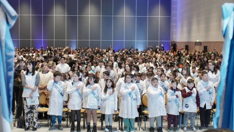 En forma simultánea la ministra Julieta Corroza, encabezó junto al intendente Mariano Gaido el acto en el Centro de Convenciones Domuyo de la ciudad de Neuquén. Allí participaron unos 270 estudiantes de escuelas primarias de Neuquén capital; Plottier; Rincón de Los Sauces; San Patricio del Chañar; Junín de los Andes; Aguada San Roque; Varvarco; Los Chihuidos; Sauzal Bonito; Las Coloradas; Octavio Pico; Santo Tomás; Paso Aguerre; El Sauce; Aguada El Overo; Chacayco Sur; Las Cortaderas; Santo Domingo; San Ignacio; El Alamito; Los Alazanes; Pichaihue; Quila Quina y Atreuco Arriba quienes realizaron la promesa a la bandera nacional.