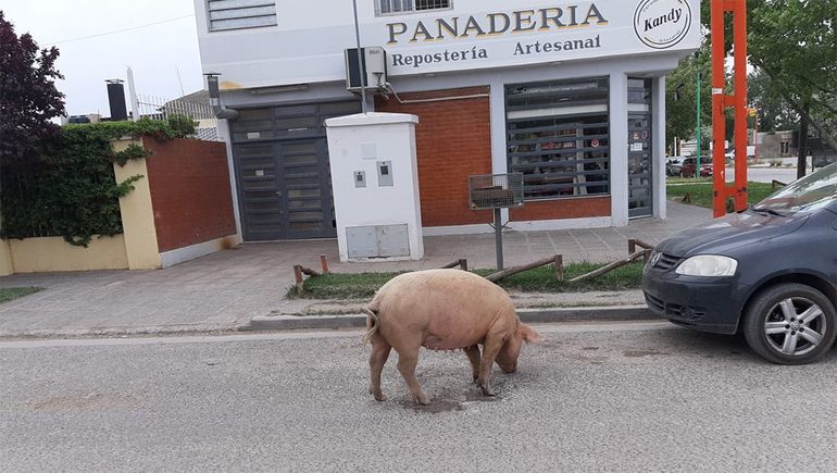 Vecinos del Parque Norte de Cipolletti se llevaron otra una sorpresa este lunes por la mañana, con la presencia de un animal más que particular: una enorme chancha.