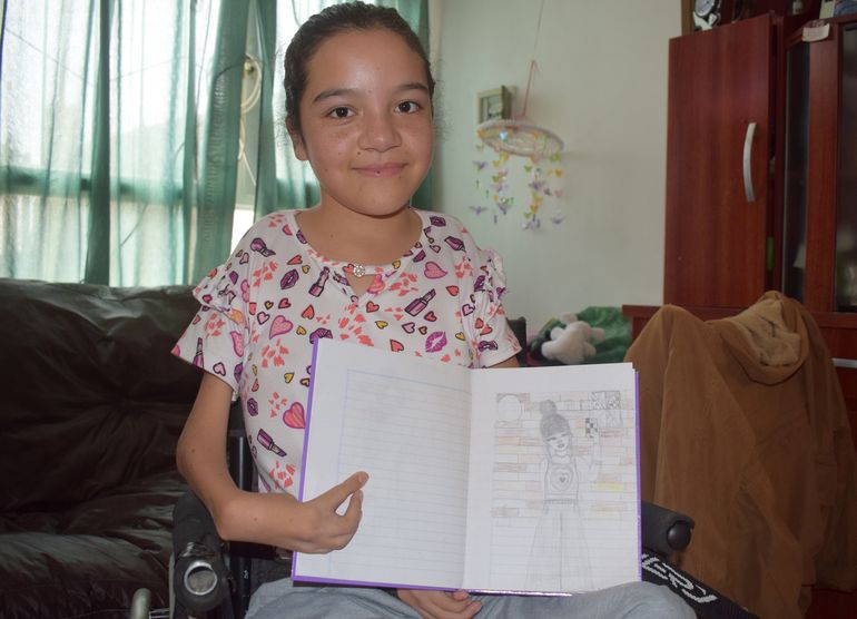 Sofía comparte sus días con su hermanito Benjamín de 7 meses y sus gatitos Tom y Lola. También le gusta tocar el teclado y dibujar. Así como se las ingenió para escribir agarrando el lápiz con sus dos manos, también hace muy lindos dibujos. “A mi estudiar me entretiene y me gusta mucho. Mi sueño es algún día poder estudiar psicología o abogacía. Tener una casa y una hermosa familia”, contó Sofía mientras jugaba en el sillón con su pequeño hermano. “Él es mi mayor bendición”, acotó. También agradeció eternamente a sus compañeros y amigos que la acompañaron en la primaria: Eluney, Priscila, Ilay y Selena.