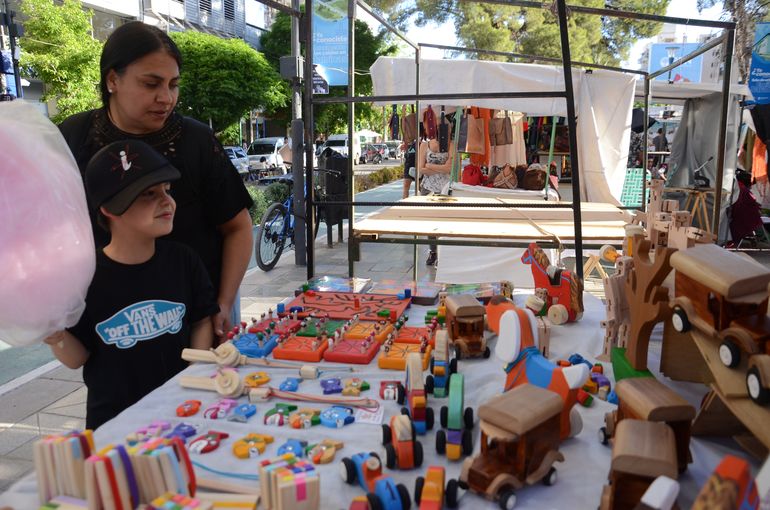 Desde horas de la mañana, la calle Avenida Argentina se colmó de especiales productos que prometen venderse a buenos precios, con artesanos locales y visitantes de otras ciudades, provincias y países limítrofes. También con presencia de artistas callejeros compartiendo su arte y oficio.
