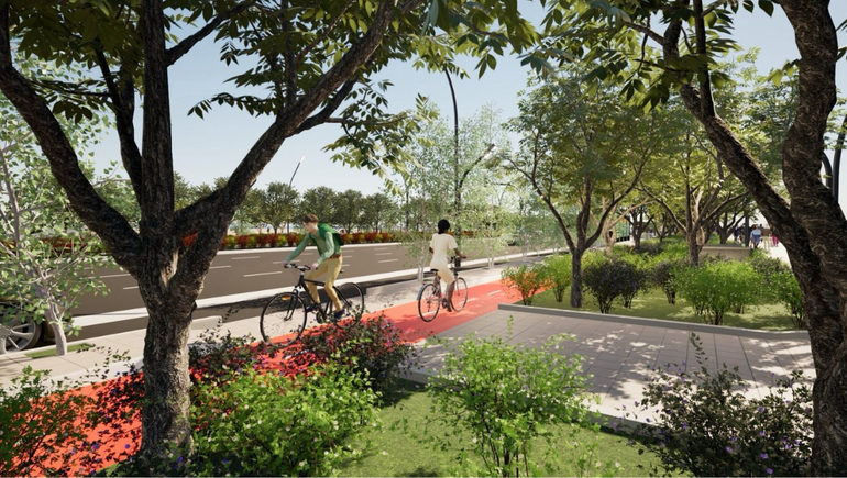 La nueva avenida incorporará cuatro carriles de circulación por cada sentido, más un quinto carril en cada en cada lado para estacionamiento.