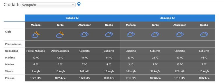 Estas condiciones se mantendrán hasta el jueves, cuando llega un frente de tormenta a la ciudad de Neuquén y desciende las temperaturas con registros fríos e invernales.