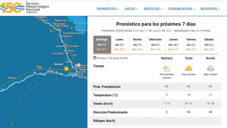 De acuerdo al Servicio Meteorológico Nacional (SMN), esta tarde alcanzará unos 15 grados de máxima con cielo algo nublado. Hacia la noche habrá algunas nubes y la temperatura descenderá a los 9 grados en la región. El viento se sentirá hacia la tarde, estará entre 23 y 31 kilómetros por hora.