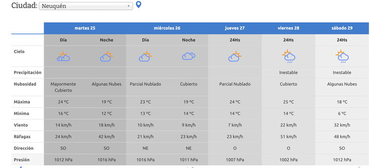 El viernes, el ente meteorológico, pronostica una jornada con formación de tormentas en Neuquén capital y alrededores que podrían generar algunas lluvias, lo que generará un descenso de temperaturas para los días siguientes.