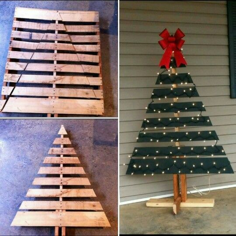 En internet también se pueden encontrar ideas para reutilizar pallets, a los que se les puede cortar una forma piramidal y colgar de la pared, decorando encima de forma creativa.