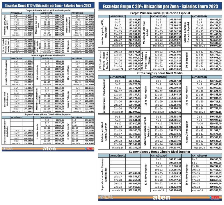 Según publicó ATEN, los centros educativos del grupo B tienen un 15 por ciento de pago adicional sobre los salarios ya publicados, mientras que los contemplados en el grupo C y D recibirá un adicional del 30 y 60 por ciento en cada caso.