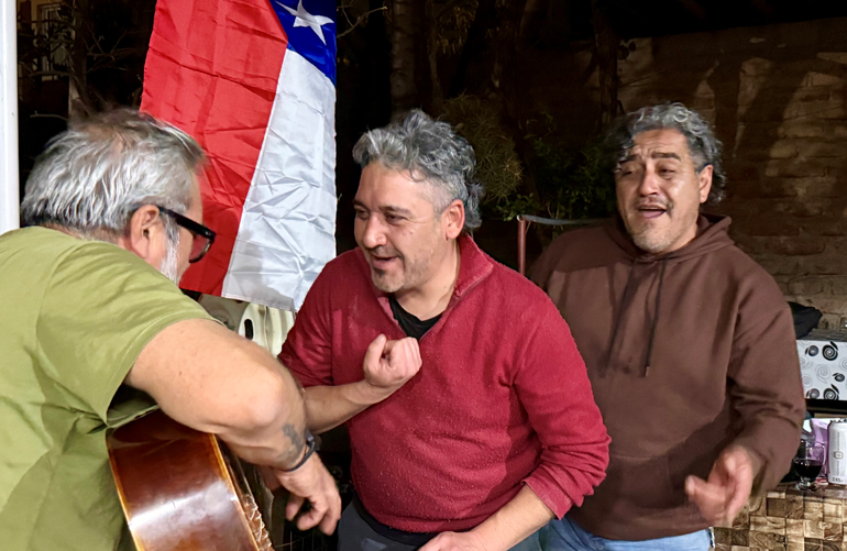 Entre brindis y brindis, la noche ya tiene guitarras. Pasan Violeta Parra, Victor Jara, Inti Illimani. También Gieco, Piero, Fandermole. Al otro día, la mayoría trabaja y aunque el carrete ya se extendió de las 12, es Dieciocho po. “Abre la muralla”, grita el coro que acompaña a los guitarreros, evocando la poesía de Nicolás Guillén que inmortalizaron unos Quilapayún. Otra época, otra Chile, otra Latinoamérica.