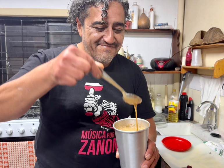 Danilo busca en vaso en la alacena para preparar la Chupilca. Encuentra un medidor fernetero de aluminio que tiene grabada la imagen de Messi con la Copa del Mundo y un “¿qué mirá, bobo?”. Azúcar, ñaco, cerveza negra y a revuelve. “Esto reanima hasta un finado”, dice, y antes de pasarla a la ronda de la parentela, le da un trago hondo.